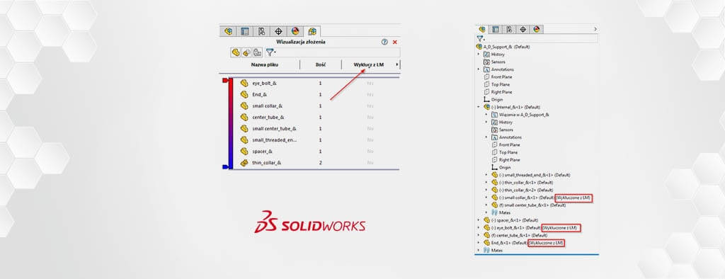 2 sposoby na wyświetlenie elementów wykluczonych z listy materiałów w SOLIDWORKS