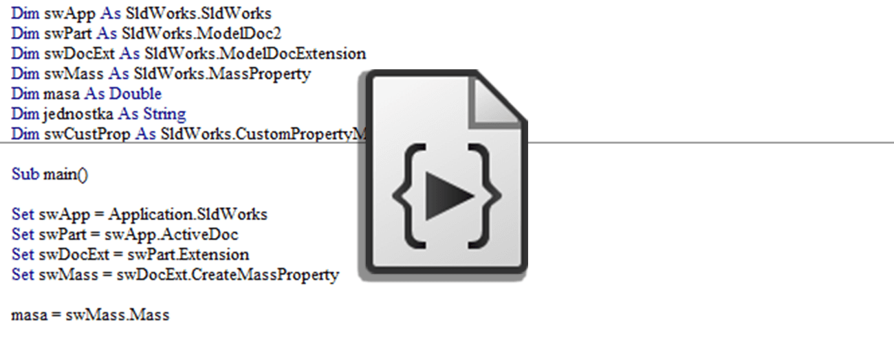 W poniższym artykule przedstawiony zostanie sposób, w jaki znaleźć aktualną masę modelu części lub złożenia i przekazać ją do właściwości dostosowanej. Zadaniem jest przeliczenie znalezionej wartości do odpowiedniej jednostki i pokazanie jej z odpowiednią dokładnością. Występują dwa przypadki: Masa mniejsza niż 1kg – wyświetlanie w gramach, usuwanie miejsc po przecinku, np. 10 g Masa większa/równa…